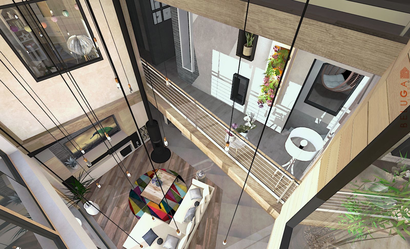 Jeux de circulations avec mezzanines donnant sur l'espace de vie.