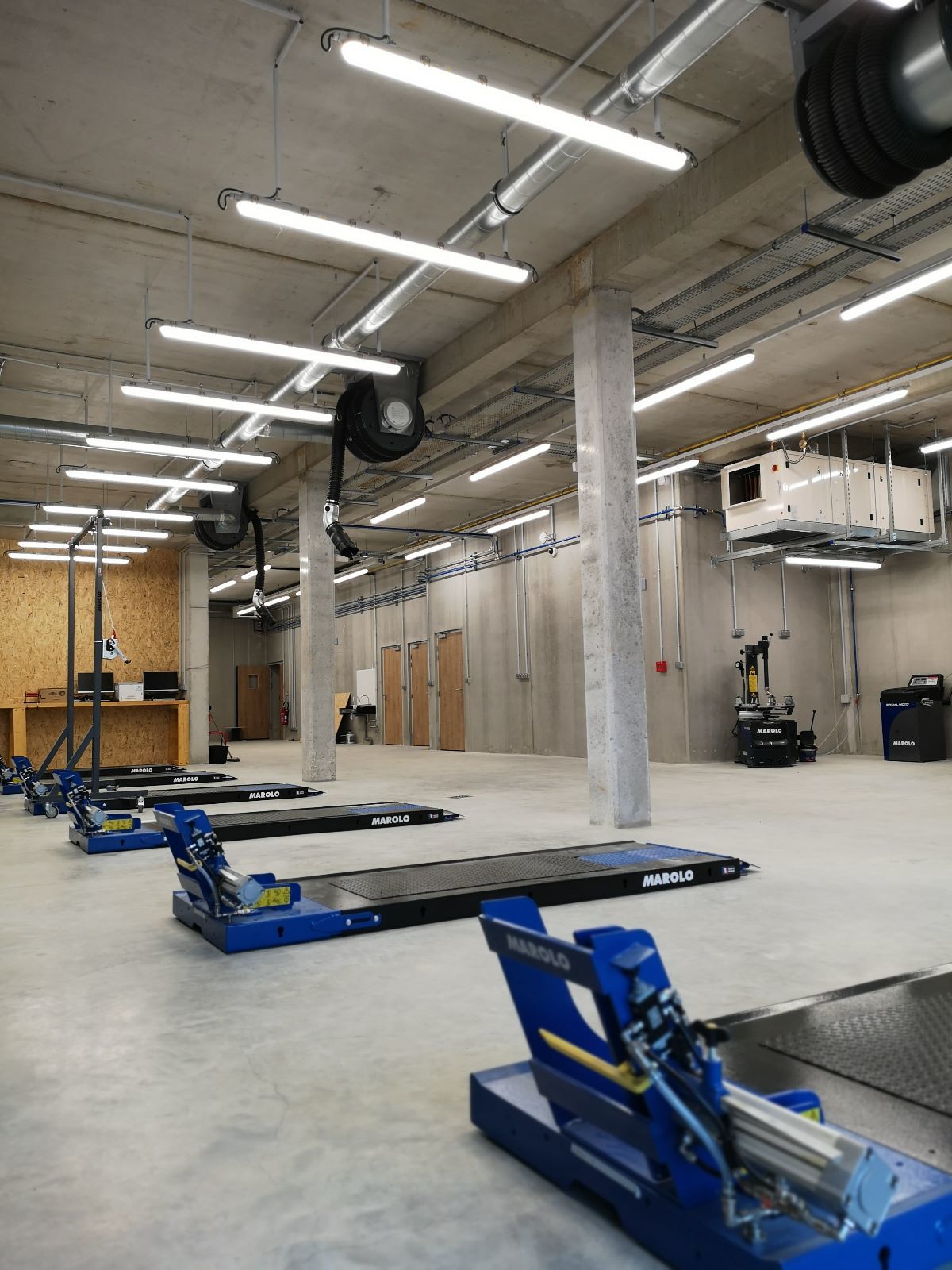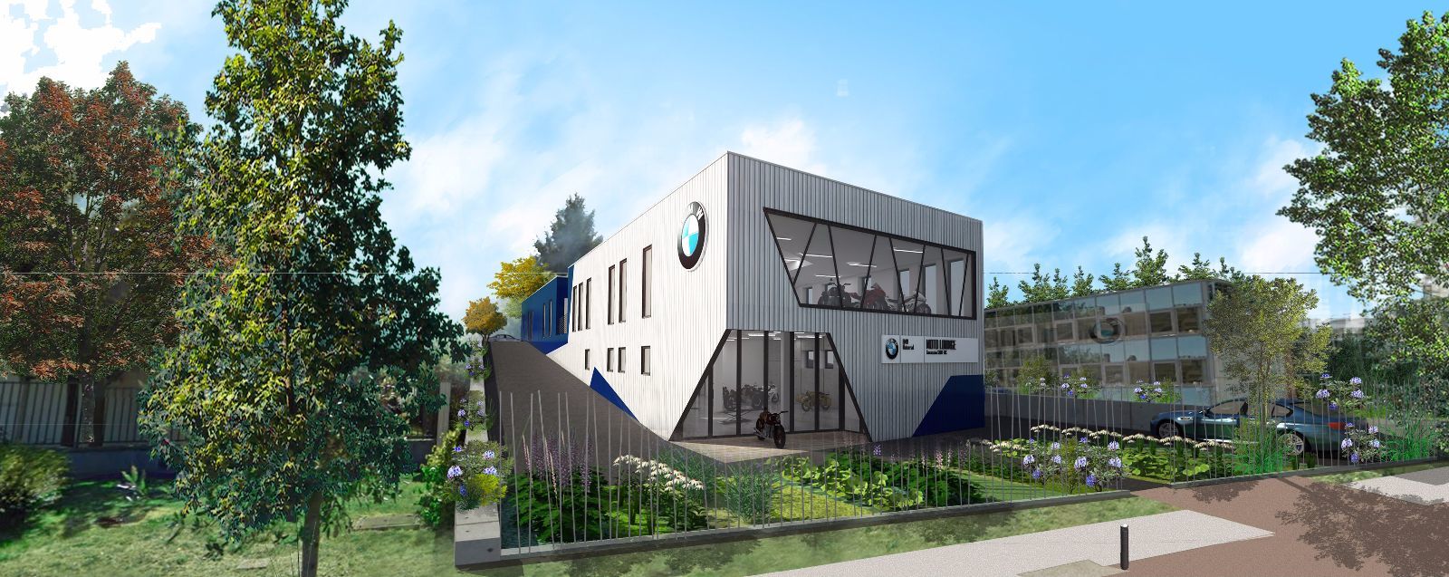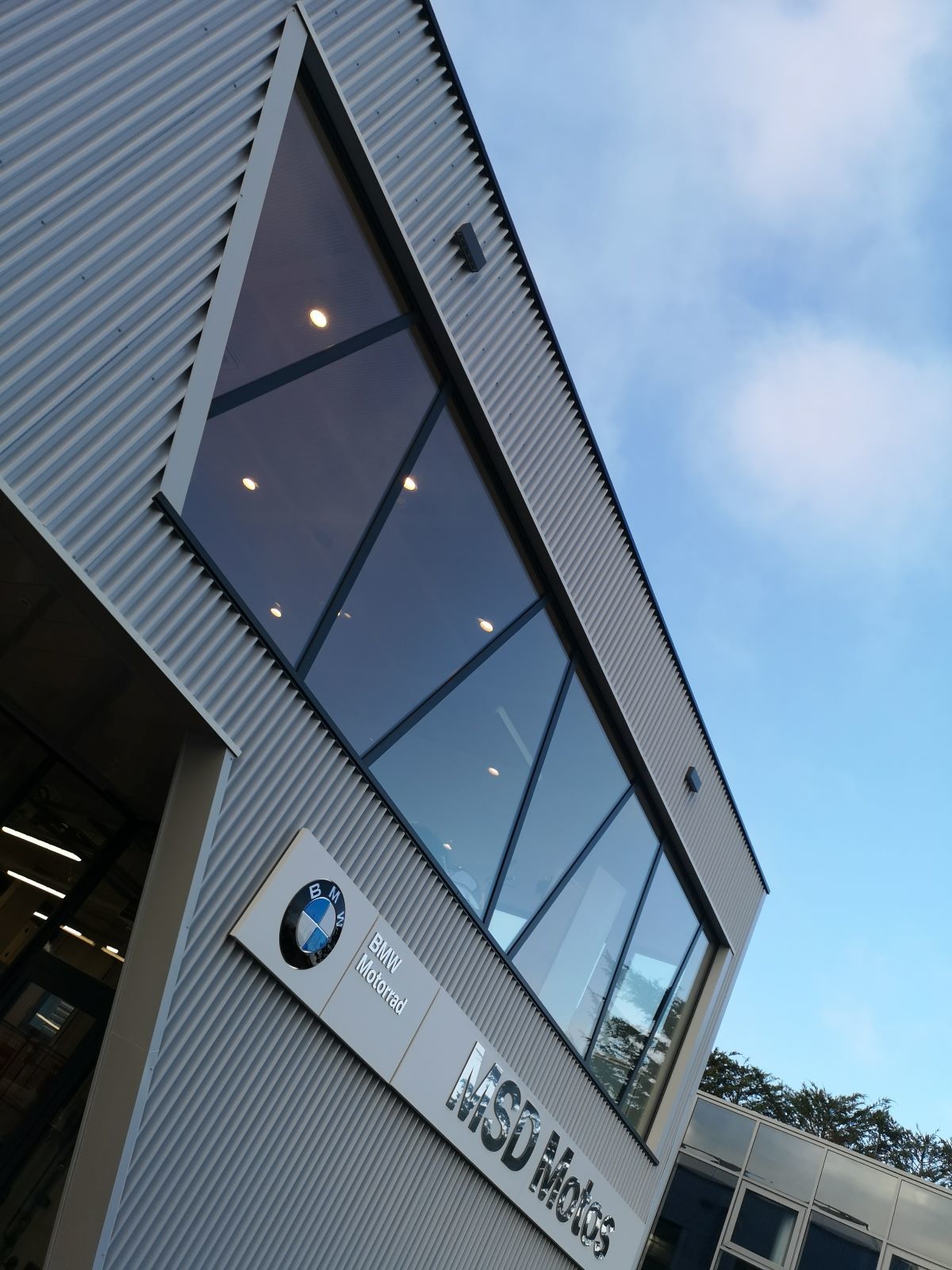 Dans un soucis de coût maîtrisé, le bâtiment se dote d'une vêture classique type bac acier mais en utilisant deux coloris afin de générer une dynamique aux façades. Toujours dans ce soucis de rythme et de dynamisme, les angles sont tronqués pour casser l'effet "boîte". La ligne "biaise" revient également au travers de l'aménagement intérieur mais aussi sur les menuiseries principales.