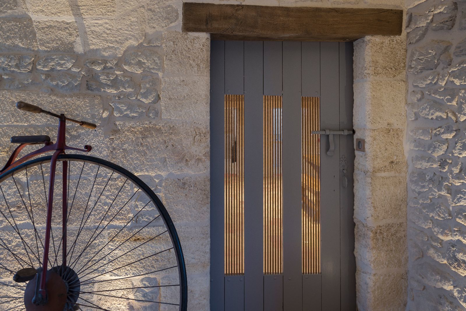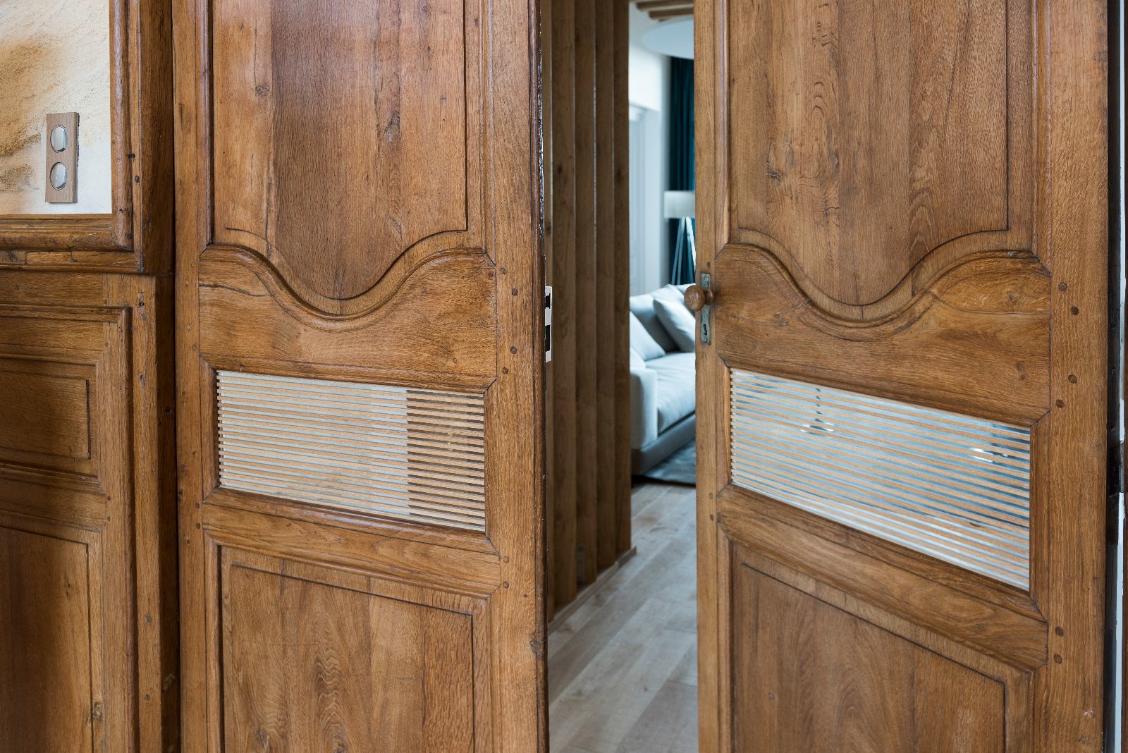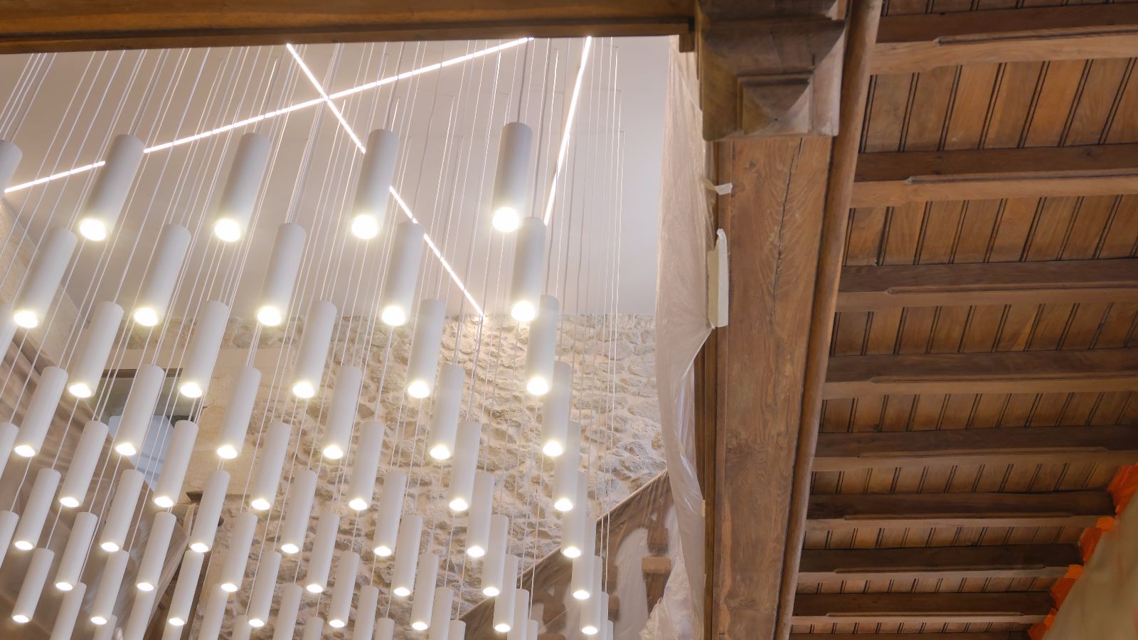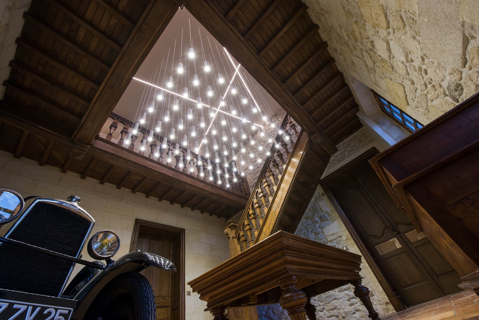 Le premier impact visuel est classique, ancien, mais une seconde lecture plus contemporaine apparait par transparence au travers des vitres, notamment par les éclairages en zigzag visibles en second jour dans le vestibule.