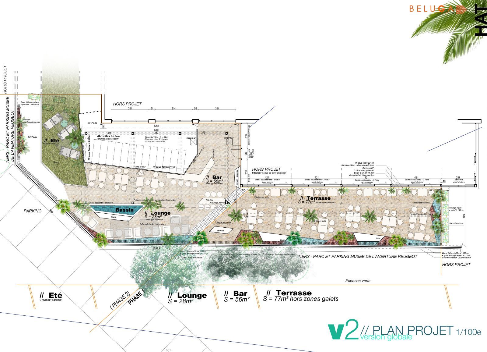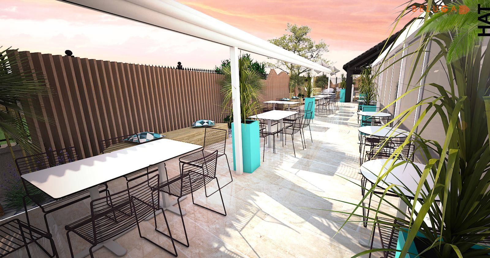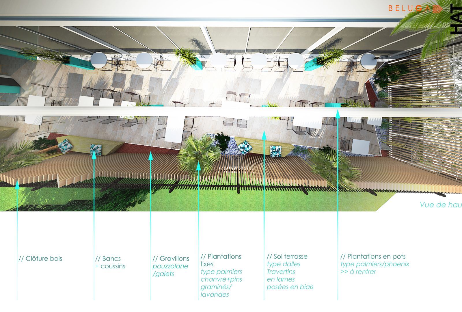 Mise à distance de l'extérieur et intimisation par des claustras bois et des végétaux.